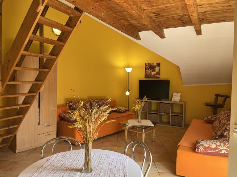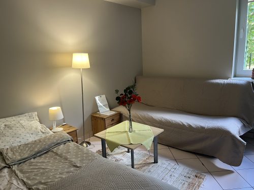 - Łóżka: 1 łóżko małżeńskie, 1 rozkładana sofa